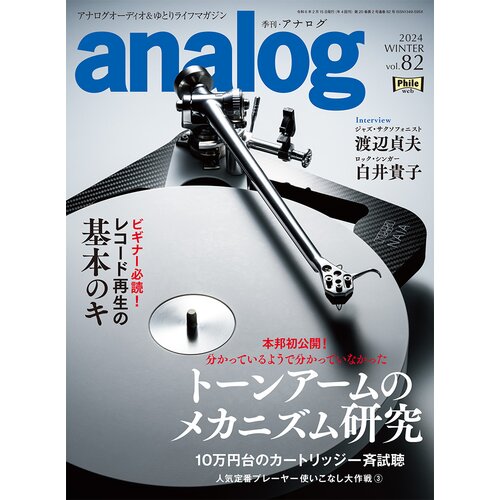 アナログオーディオと⼈と物にまつわる物語を紹介する、国内唯⼀のアナログオーディオ専⾨誌「季 刊・アナログ」。最新82号は、アナログレコード⼈気が⾼まる中でビギナーの⽅々に向けてお届けする Q&A企画「レコード再⽣ 基本のキ」、アナログレコード再⽣になくてはならないカートリッジの18モ デル⼀⻫試聴レポート「10万円台のカートリッジ」、そして「トーンアームのメカニズム研究」など、 ⾒逃せない内容が盛りだくさんとなっています。ぜひお⼿に取ってお読みください。